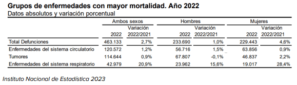 España 463.133 defunciones, 12.389 más que en el año anterior (un 2,7% más).