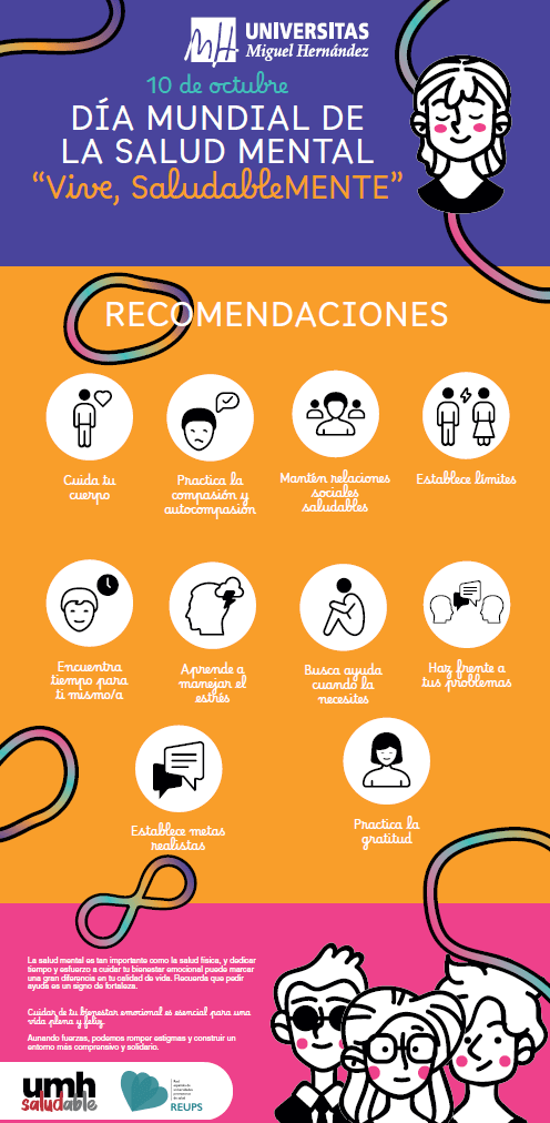 - Busca ayuda cuando la necesites: no temas por pedir ayuda si te sientes abrumado/a o si necesitas apoyo. Habla con una amiga/o de confianza, un familiar o un profesional de la salud mental si estás experimentando dificultades emocionales.