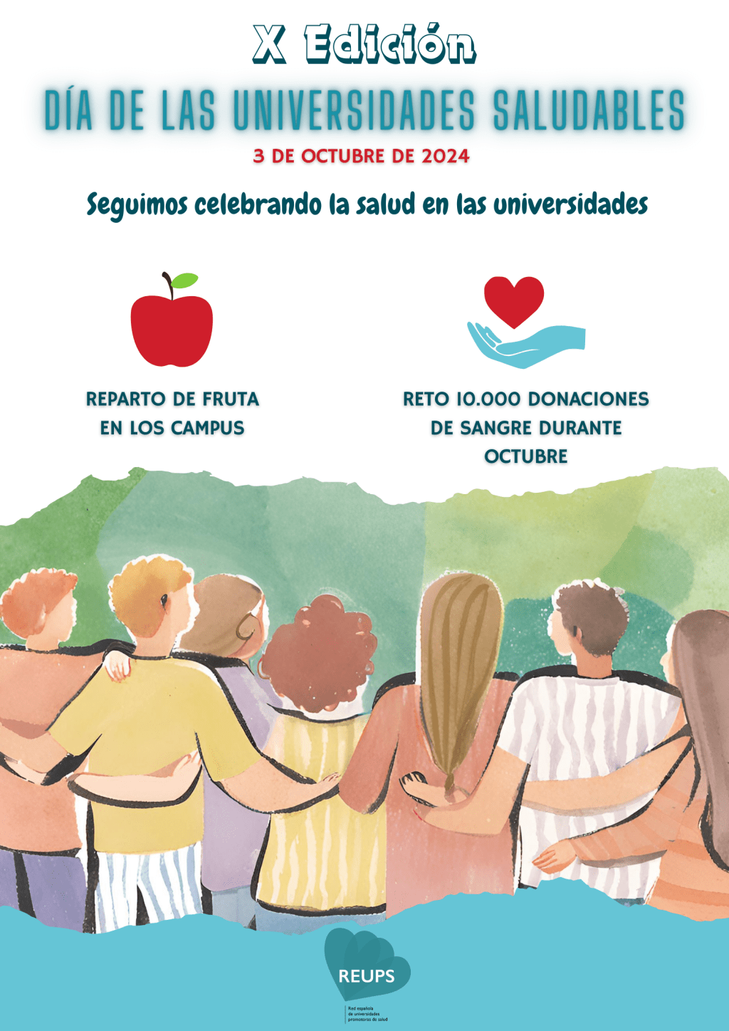 La Red Española de Universidades Promotoras de Salud (REUPS) ha celebrado el pasado 3 de octubre de 2024 el Día de las Universidades Saludables, donde se pone de manifiesto la importancia de la promoción de la salud en la comunidad universitaria. Con motivo de este día, se lleva a cabo el “Reto 10.000”, con el objetivo de desarrollar campañas de donación de sangre en los campus españoles.