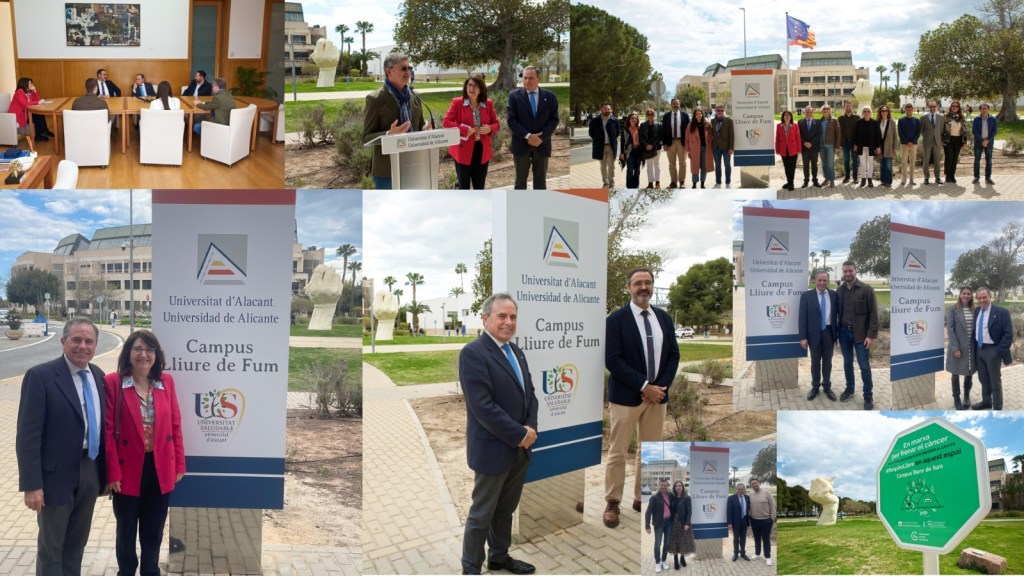 Desde el día 25 de marzo, el campus de San Vicente del Raspeig de la Universidad de Alicante es un espacio más sano, más saludable y más sostenible. En definitiva, es un lugar más “libre de humo” gracias a una iniciativa de concienciación puesta en marcha por la institución académica mediante el trabajo del Secretariado Universidad Saludable en colaboración con la Asociación Española contra el Cáncer (AECC). Con la colocación de señalética informativa y distintas acciones de comunicación, el “Campus Libre de Humo” pretende mejorar el entorno gracias a la reducción del consumo de tabaco entre la comunidad universitaria.