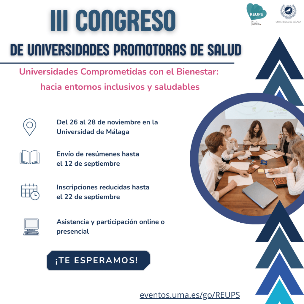 La inscripción reducida se puede hacer hasta el 22 de septiembre. Además, se otorgan 20 becas de inscripción a estudiantes de universidades pertenecientes a la REUPS y 10 para estudiantes de la Universidad de Málaga, así como una inscripción por universidad adherida a la Red Iberoamericana de Universidades Promotoras de la Salud (RIUPS).