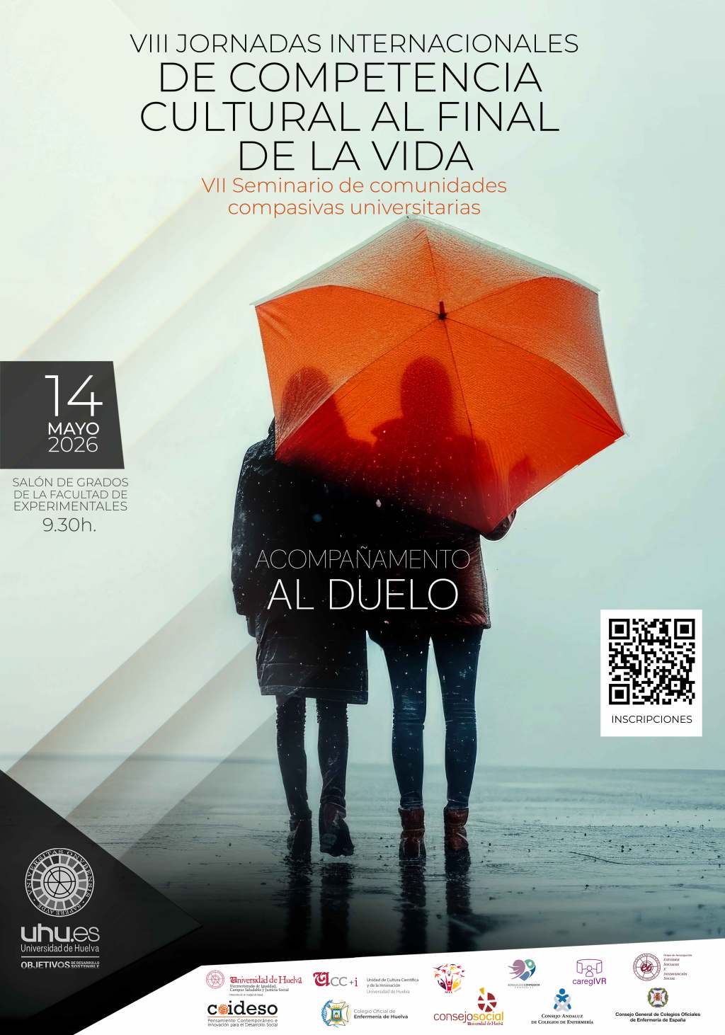 Estas jornadas, organizadas junto al Grupo de Investigación AFLV (Afrontamiento al final de la vida. Investiga+) de la Junta de Andalucía y el equipo de Borderless Compassion Community, cuentan además con la valiosa colaboración del Consejo Social, la Unidad de Cultura Científica, el Colegio Oficial de Enfermería de Huelva y COIDESO.